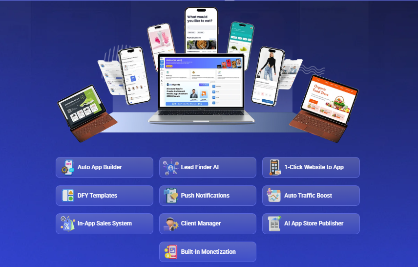 It’s perfect for local businesses, restaurants, gyms, coaches, influencers, eCom stores, and freelancers who want to sell app creation services for $500–$2,500+.